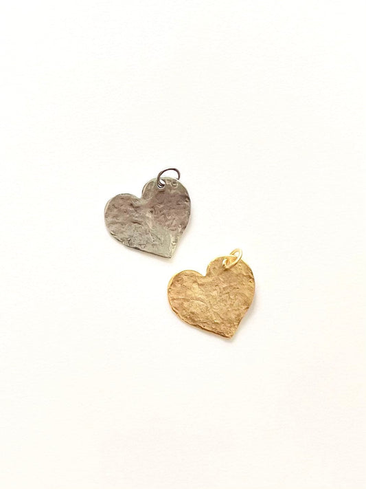 Hammered Heart, Charm Bracelet, Valentine Heart, Gold Charm, Gold Pendant, Jewelry Component, Gold Heart, Silver Heart