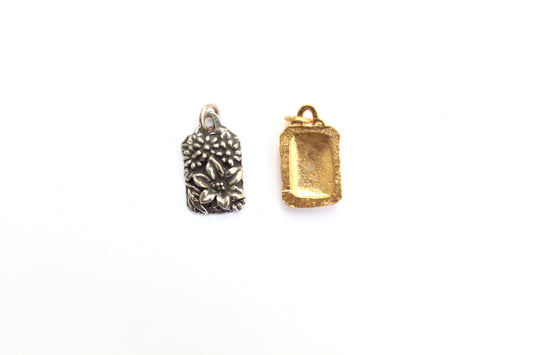 Rectangular Bouquet Charm In Britannium – Nature's Bloom in Timeless Metal