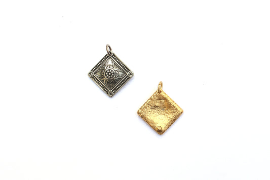 Square Shield Pendant in Britannium– Floral Elegance with Beaded Border