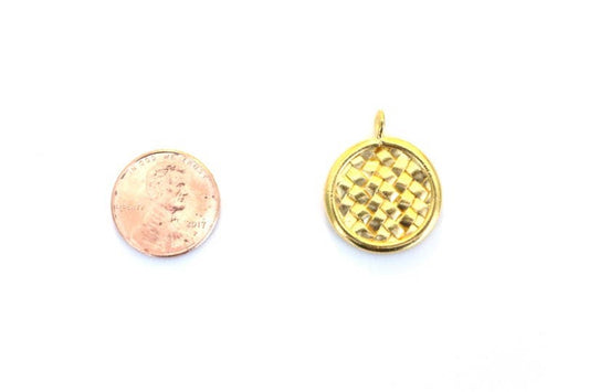 Basket Weave Coin Charm, Gold Charm, Gold Coin, Coin Pendant, Coin Jewelry, Basket Weave, Woven Charm, Woven Jewelry, Britannium, Gold