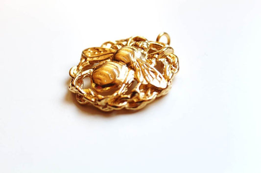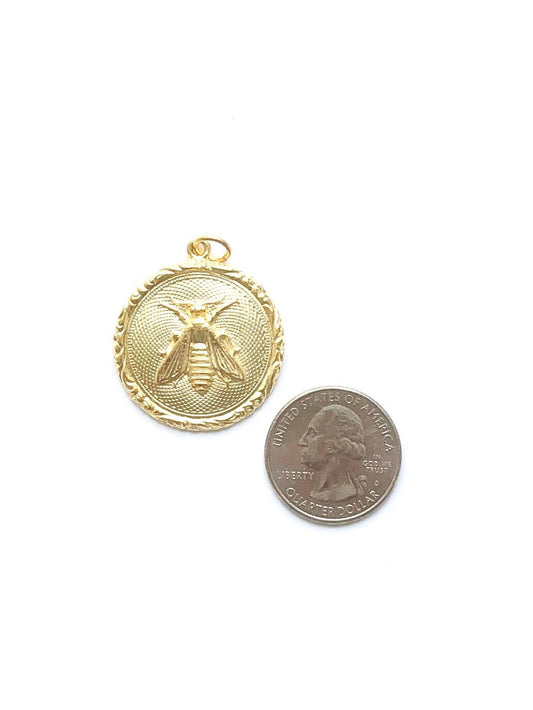 Gold Bee Coin Charm, Bumblebee, Queen Bee, Gold Charm, Honeybee, Coin Jewelry, Bee Jewelry, Bee Jewelry, Bee Necklace, Bee Pendant, Gold Bee
