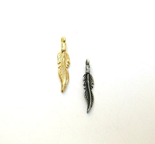 Gold Charm, Feather Charm, Feather Jewelry, Feather Pendant, Britannium Charm, Pewter, Pewter Feather