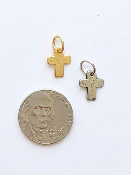 Little Hammered Cross, Cross Charm, Pewter Charm, Gold Cross, Gold Charm, Silver Pendant, Silver Charm, Crucifix, Charm Bracelet, Communion