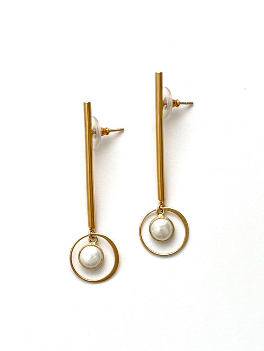 Minimalist Post, Tubular Earring, Pearl Earrings, Modern Earrings, Post Earrings, Sleek Earrings