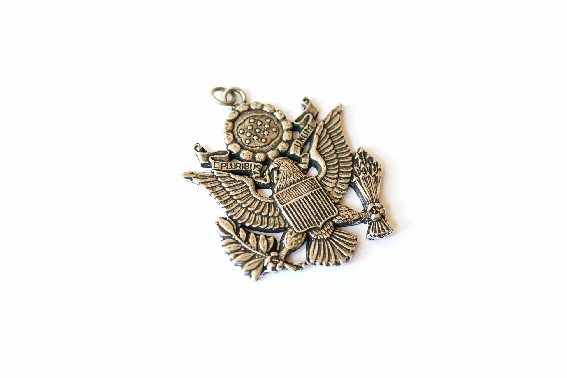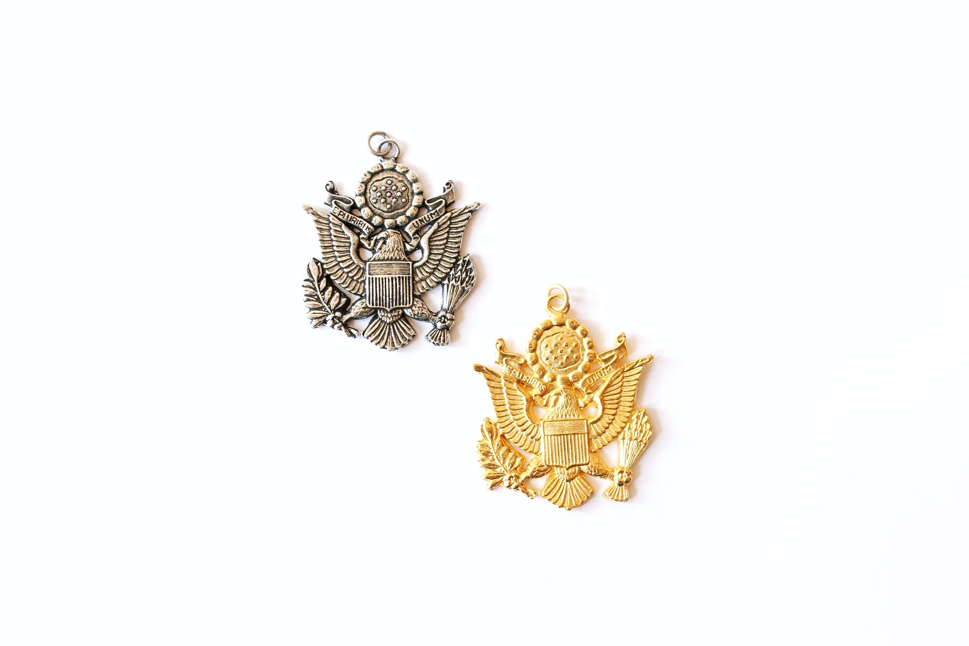 Product Description: Elevate your jewelry designs with our American Eagle Insignia Medal Pendant, meticulously crafted from high-quality Britannium. This striking pendant showcases the majestic American Eagle, a symbol of strength and freedom, making it a perfect centerpiece for custom jewelry pieces or as a standalone statement accessory.