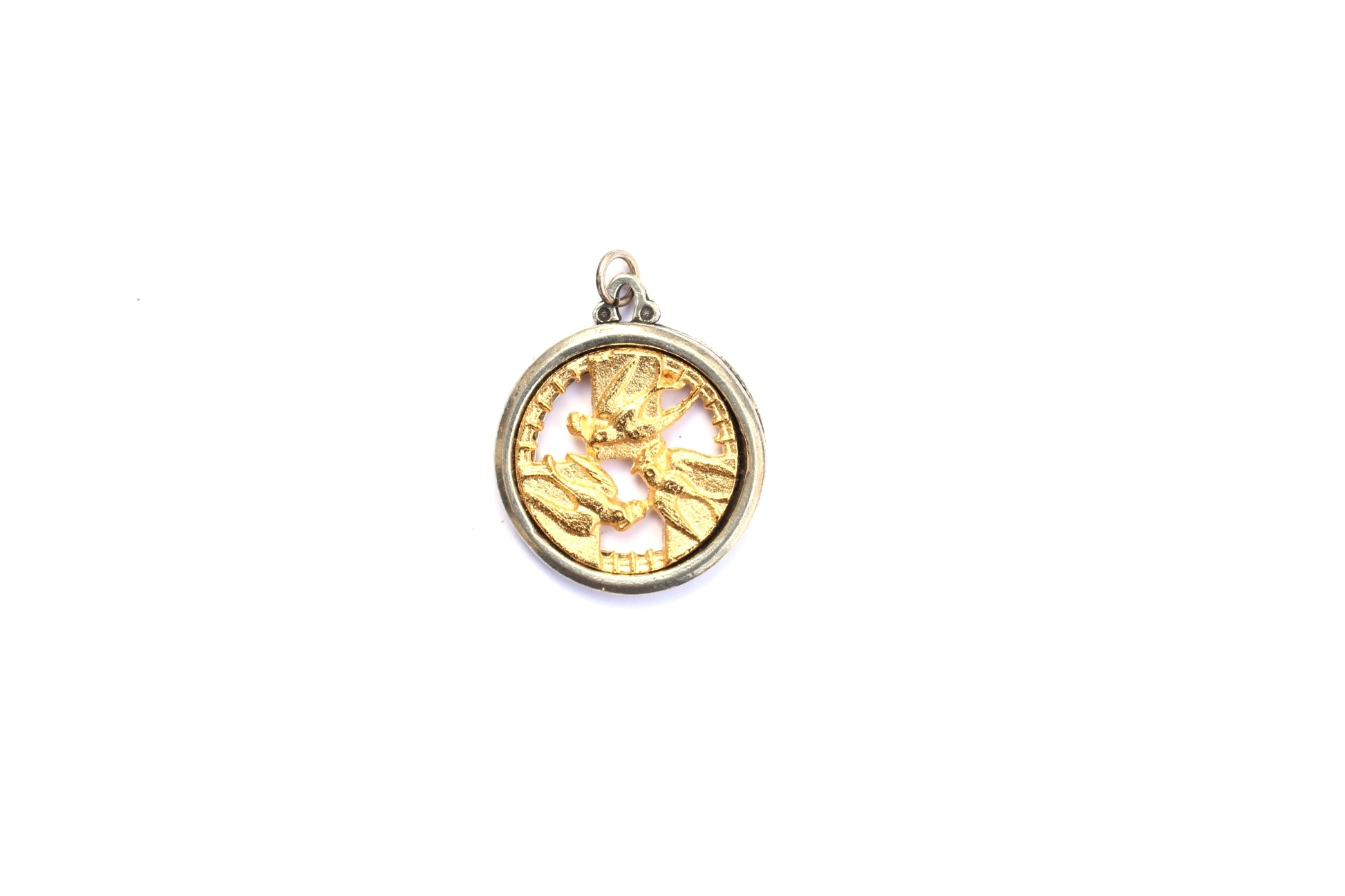 Mixed Metal Swallow Pendant - Britannium Coin Charm
